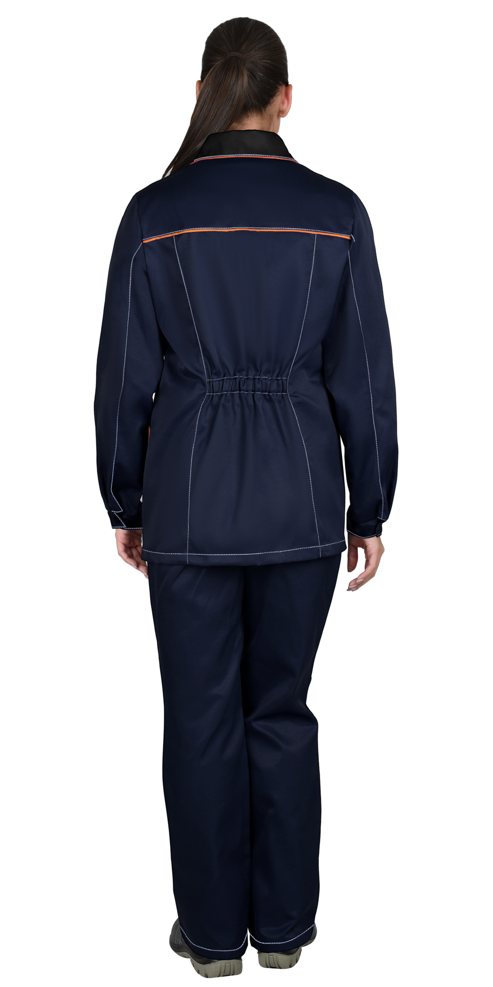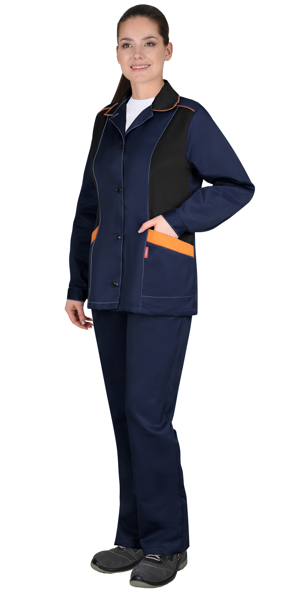Костюм ЗОЛУШКА женский, куртка, брюки, темно-синий с черным и оранжевой отделкой